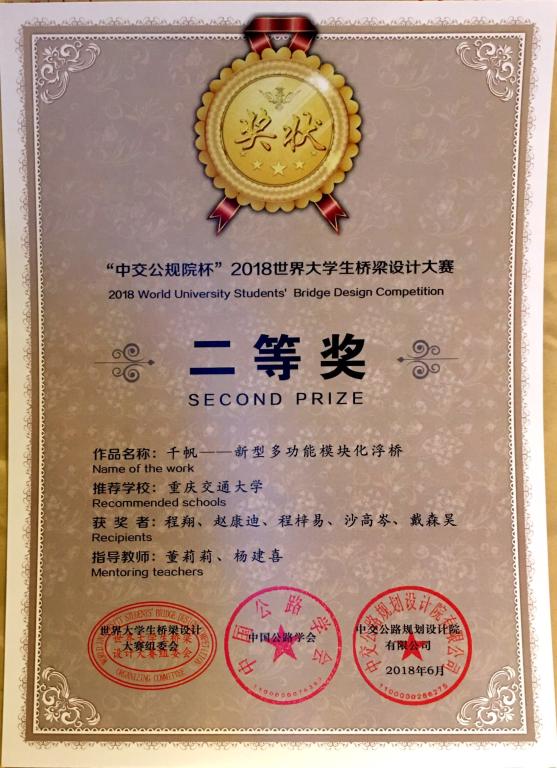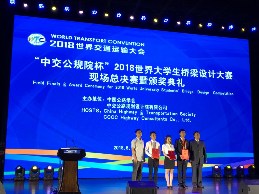 6月19日下午,2018世界大学生桥梁设计大赛决赛在北京国家会议中心举行,来自全国高校的设计团队依次上台通过丰富多彩的形式展演了自己的设计作品。最终,我校建筑与城市规划学院选送的作品《PLUS——叙利亚幼发拉底河上的爱见之桥》(参赛学生:Ola Younes、王维、宋蕴秋、刘昕宇、何屹东;指导教师:董莉莉、刘礼标)荣获一等奖,建筑与城市规划学院联合土木工程学院选送的作品《千帆——新型多功能模块化浮桥》(参赛学生:程翔、赵康迪、程梓易、沙高岑、戴森昊;指导教师:董莉莉、杨建喜)荣获二等奖。www.b82.com荣获优秀组织奖,董莉莉、刘礼标、曾强、杨建喜荣获优秀指导教师奖。