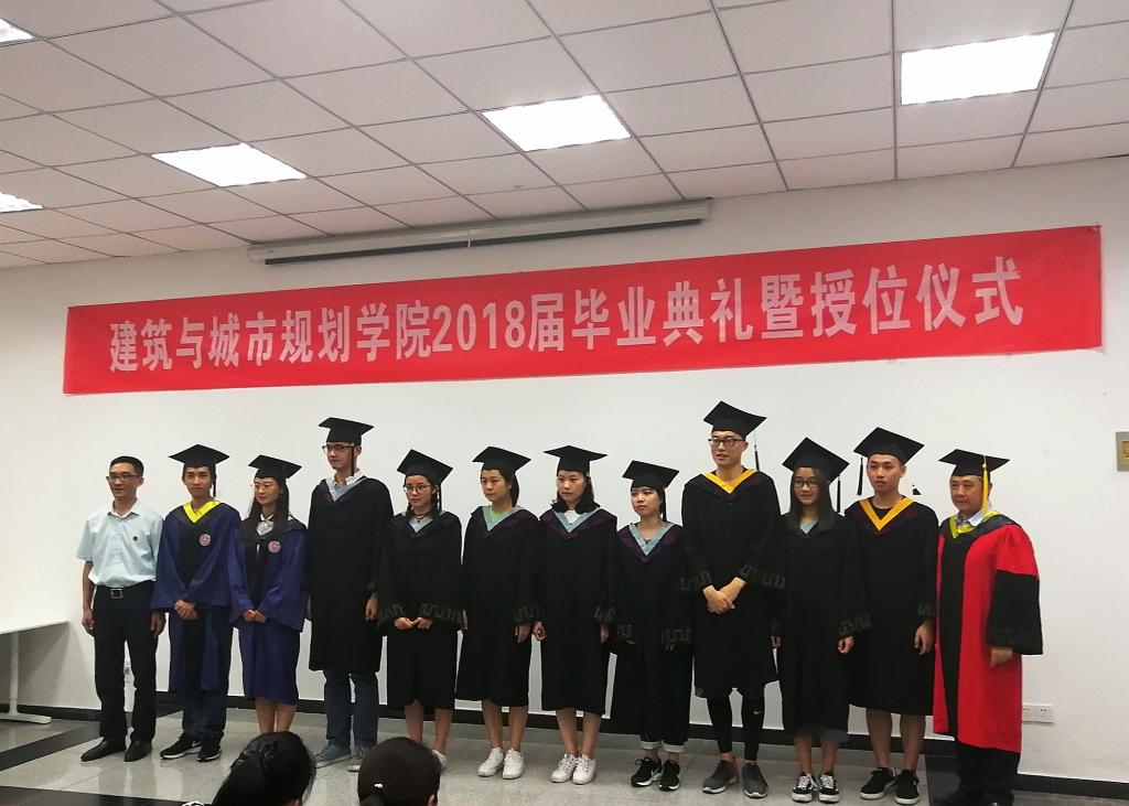 2018年6月29日下午,建筑与城市规划学院2018届毕业典礼暨授位仪式在第一教学楼101报告厅隆重举行。出席本次大会的有:学院党总支书记刘建新、院长凌天清、副书记徐园媛、副院长董莉莉、院长助理林孝松,各系室主任、教师代表、辅导员代表以及2018届本科、研究生全体毕业生100余人参加。会议由徐园媛副书记主持。