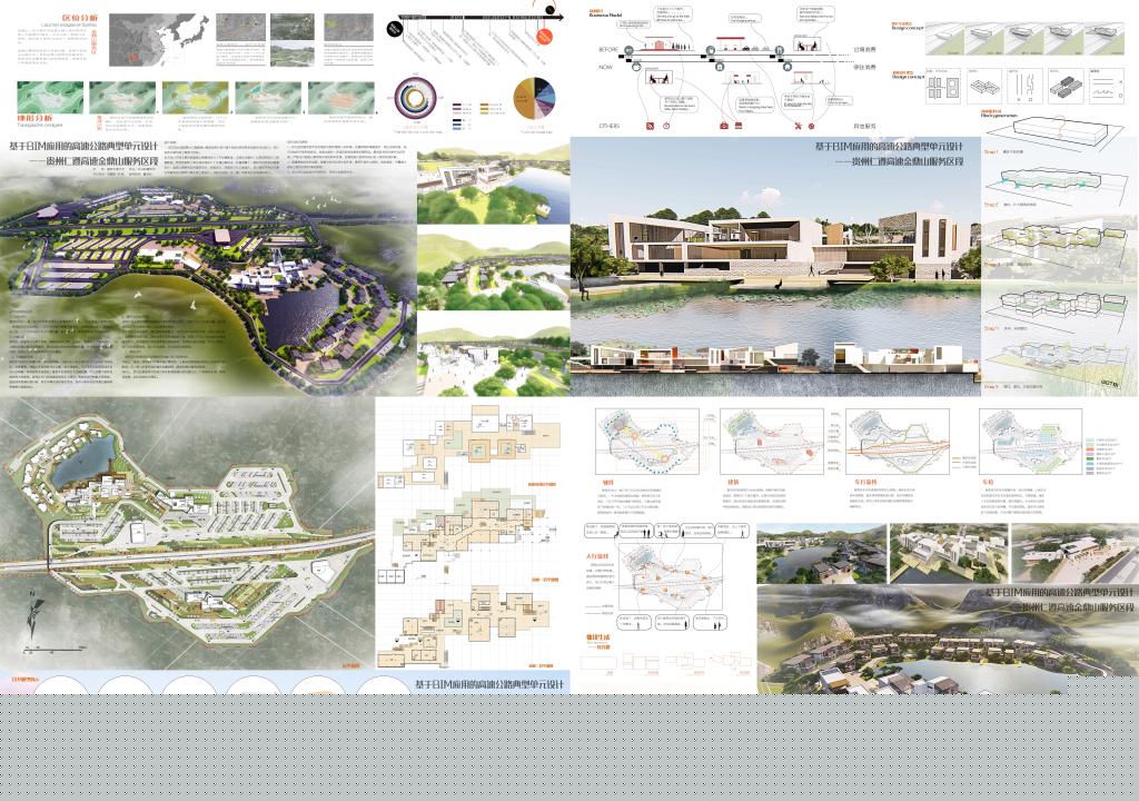 论坛期间还举办了优秀毕业设计展,我校由魏晓老师指导,索明简、邓宇文完成的“上下舞台——重庆市渝中半岛解放碑戴家巷地块旧城更新设计”、董莉莉老师指导,向姮玲、韦刚完成的“基于 BIM 应用的高速公路典型单元设计——贵州仁遵高速金鼎山服务区”共两份毕业设计作品代表学校参展。
