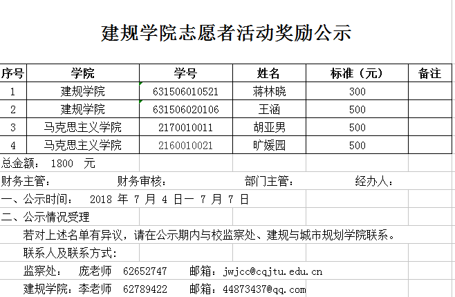建规学院7月志愿者活动奖励公示