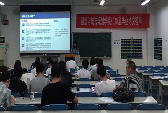学院2013级建筑学1-2班、2014级人文地理与城乡规划、2014级地理信息系统等3个专业的毕业生共计117人参与答辩。同学们经过12周近3个月的准备,完成了论文选题、文献综述、数据收集、模型构建、研究结论及论文文本编制(或设计作品制作)等环节的工作,116人顺利通过了论文答辩,通过率99.1%