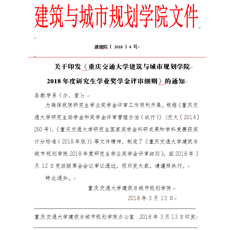 根据《www.b82.com研究生助学金和奖学金评审管理办法(试行)》 (交大〔2014〕260号)、《www.b82.com研究生国家奖学金科研成果和学科竞赛获奖计分标准(2018年版)》等文件精神,特制定建筑与城市规划学院研究生学业奖学金评审细则。