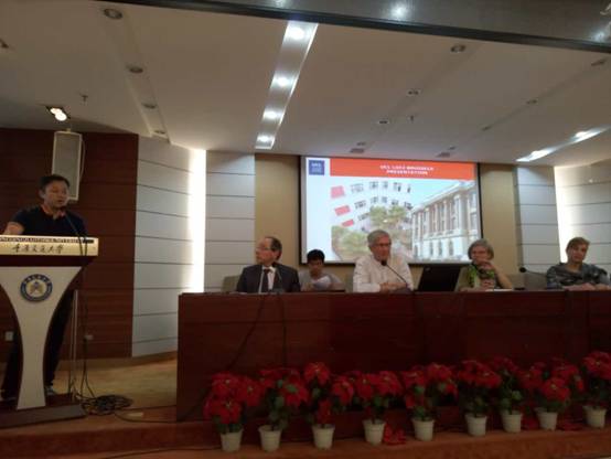 2016年5月8日,来自比利时鲁汶大学建筑学院副院长Jean-Paul Verleyen教授、学士学位课程主任Joelle Houde教授、文物保护修复中心主任Jean-Louis Vanden Eynde教授、国际学生交流处主任Christine老师一行四人来访我院,开展了由重庆市外事局牵头,学校国际处协调,建筑与城市规划学院具体负责的酉阳土家村落考察活动。当天上午,我院院长凌天清教授、院长助理林孝松教授、建筑系主任汪峰教授等人与外国专家举行了见面座谈会。凌院长在座谈会上致辞欢迎各位专家来访,向给位外宾详细的介绍我校的发展历史与基本情况,并对即将展开的考察活动提出宝贵的建议。会议完毕以后凌院长带领外宾参观交大校园,让外宾领略我校风采。