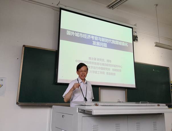 2018年5月15日下午15点,受学院邀请,中国科学院南京地理与湖泊研究所姚士谋研究员在我校第二教学楼20409教室进行了题为“国外城市经济考察与新时代我国城镇化发展问题”的学术讲座。讲座由学院院长助理林孝松教授主持,学院地理信息与国土资源系全体教师、地理学硕士研究生,以及2014、2015级人文地理与城乡规划、地理信息科学两个专业本科生共计200余人参加。