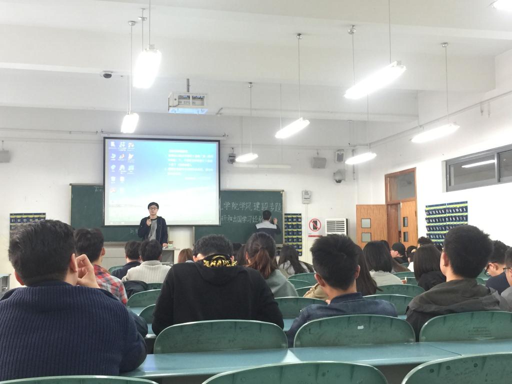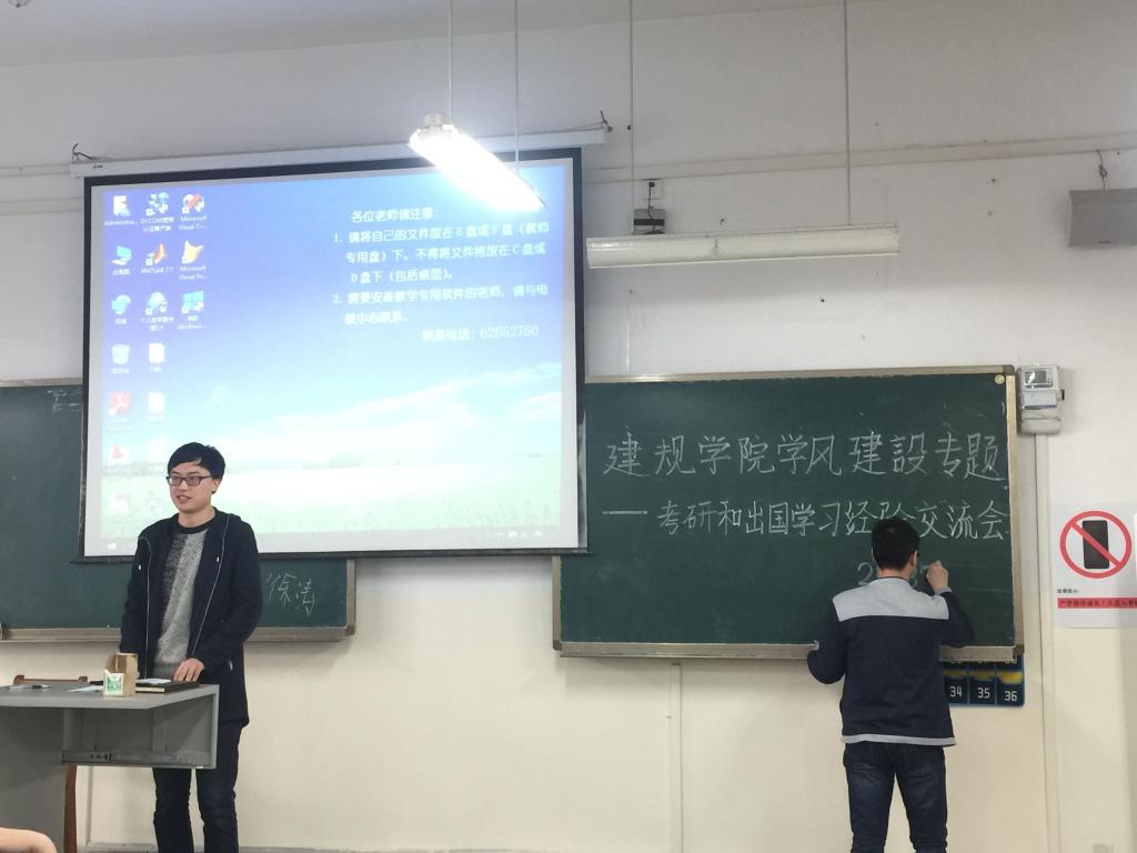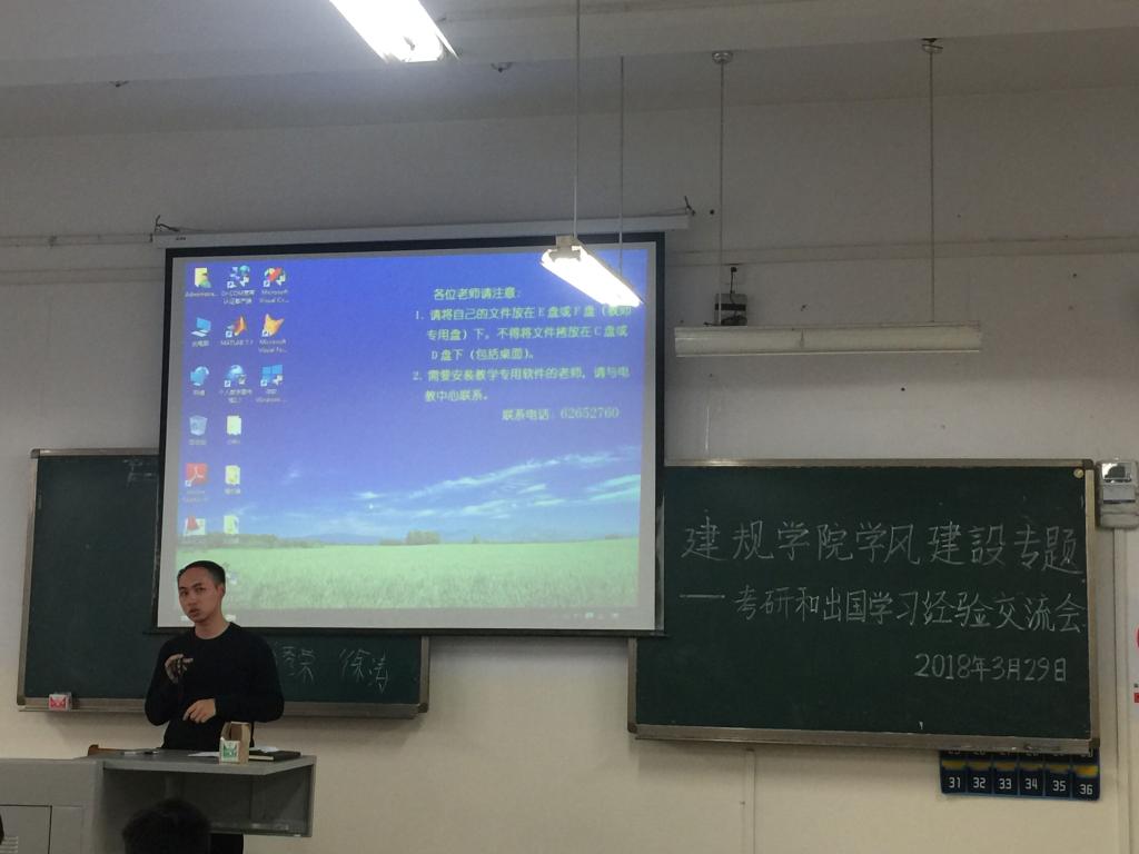 为加强我院建筑类专业大四同学对考研和出国深造的了解,以准确把握考研与出国留学的动向,2018年3月29日下午3点,我院于二教407教室开展了学风建设专题——考研和出国学习经验交流会。本次交流会由辅导员汪敏老师担任主持,邀请到2013级建筑学专业多位优秀学生代表到场分享考研、推免或申请出国的经验,参加本次会议的还有2014级建筑学和风景园林专业的全体学生。