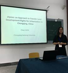 陈春副教授在“Land Development”分会场进行题为“Dipiao: An approach to Transfer Land Development Rights for Urbanization inChongqing, China”的报告,并推介了国家自然科学基金资助即将由科学出版社出版的新书《城乡建设用地置换机理与风险研究——以重庆地票为例》,报告引起了在场学者的兴趣,纷纷就报告和书的内容进行提问。