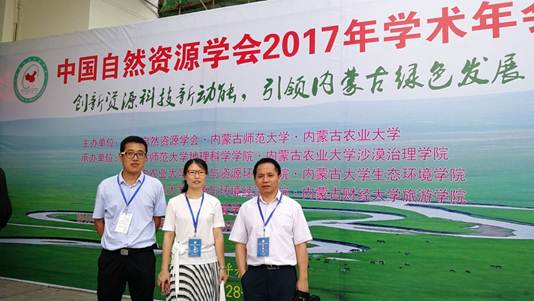 中国自然资源学会2017年学术年会于7月29日在内蒙古师范大学隆重召开。本次年会由中国自然资源学会、内蒙古自然资源学会主办,内蒙古师范大学地理科学学院、内蒙古农业大学沙漠治理学院等7所院校联合承办。本次年会围绕“创新资源科技新动能,引领内蒙古绿色发展”的主题进行了专题研讨,来自全国各科研院所及高校的两院院士、专家学者及青年学生代表共930人参加了会议,共享本次学术盛会的新思路、新观点、新方法和新成果。学院官冬杰教授、黄海副教授、张学儒副教授应邀参加了本次年会,与学术界同仁进行了充分的学术交流。