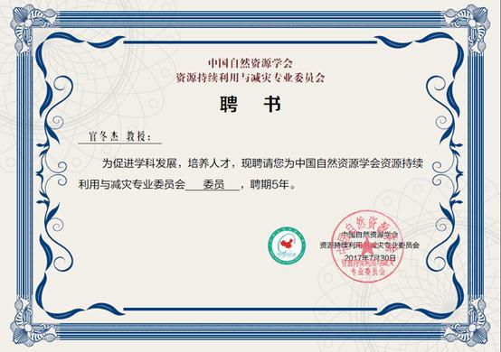 资源持续利用与减灾专业委员会委员聘书