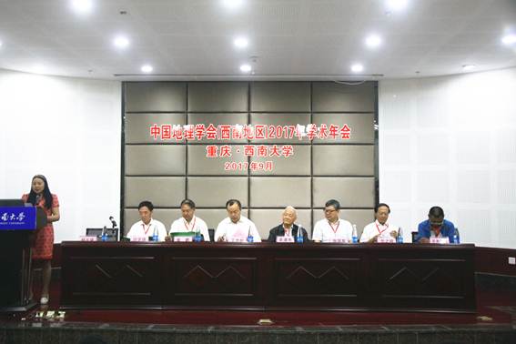 大会开幕式由西南大学地理科学院院长、重庆地理学学会理事长杨庆媛教授主持,西南大学党委常委、副校长丁忠民教授、中国地理学会副理事长兼执行秘书长张国友研究员分别代表西南大学和中国地理学会致辞,中国科学院院士、UNEP世界岩溶中心学术委员会主任袁道先教授,中国科学院院士、中国地理学会副理事长崔鹏研究员等出席开幕式。