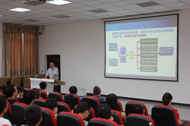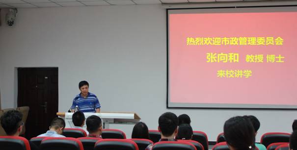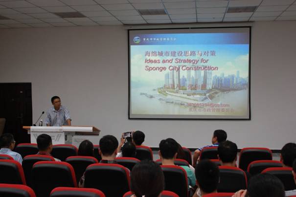 2016年6月21日下午,重庆市市政管理委员会技术标准处张向和处长受邀在南岸校区第一教学楼101报告厅做题为“海绵城市建设思路与对策”的学术报告。报告会由学院院长凌天清教授主持,学院党总支书记刘建新、副院长董莉莉、院长助理林孝松等领导出席,建筑系、风景园林系、地理信息科学系、城乡规划系教师代表以及建筑与土木工程、地理学在读研究生和本科生参加。此外,本次学术报告还吸引了土木工程学院、河海学院等院系的教师及学生十余人参会。