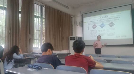 张灵艺老师针对不同专业同学,将园林与大家息息相关的健康话题结合起来,介绍了园林在净化环境、强身康体、理疗健身、调节情绪、陶冶情操等方面对人类生理健康和心理健康产生的积极作用。通过将园林植物固碳释氧、吸收毒气、阻止烟尘、削弱噪声、杀菌防病的生态功能形象的比作“氧气加工厂”“污染治理厂”“环境吸尘器”“环境消声器”“空气清新剂”等阐释了园林对人体生理健康的益处,同时从园林景观的色彩、芳香、文学艺术等方面诠释了园林景观如何从心理方面促进人体健康,从而提起同学们的兴趣,让学生们增强对风景园林专业的认识和爱好。