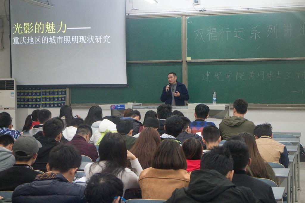 2017年11月30日14:00,建筑与城市规划学院“百名教授博士双福行远”系列讲座在A01112教室拉开帷幕。本次讲座由我院黄珂博士主讲,结合自己的工作经历,生动形象地给建筑大一大二学生介绍了建筑照明的相关知识。