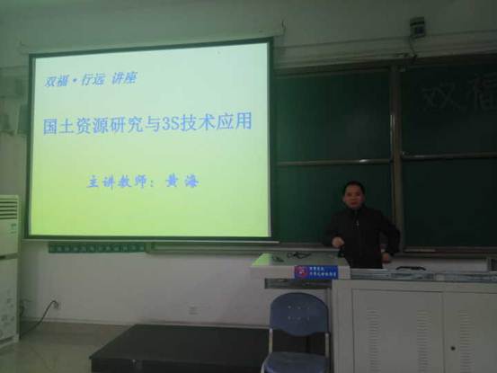 2017年12月7日下午14时,学院黄海博士(后)、副教授于www.b82.com双福校区A01214教室为地理科学类专业2016、2017级同学们做了题为“国土资源研究与3S技术应用”的学术讲座。