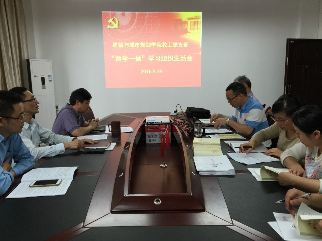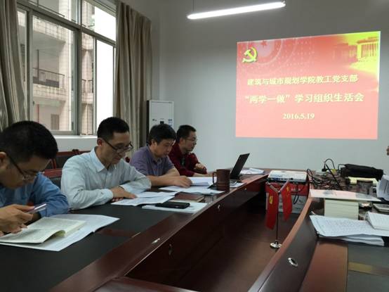 按照学校“两学一做”学习教育实施方案的要求,2016年5月19日下午3:00,建筑与城市规划学院教工党支部在学院会议室开展“两学一做”学习组织生活会。会议由教工党支部书记林孝松主持,党总支书记刘建新、院长凌天清以及全体教工党员参加。