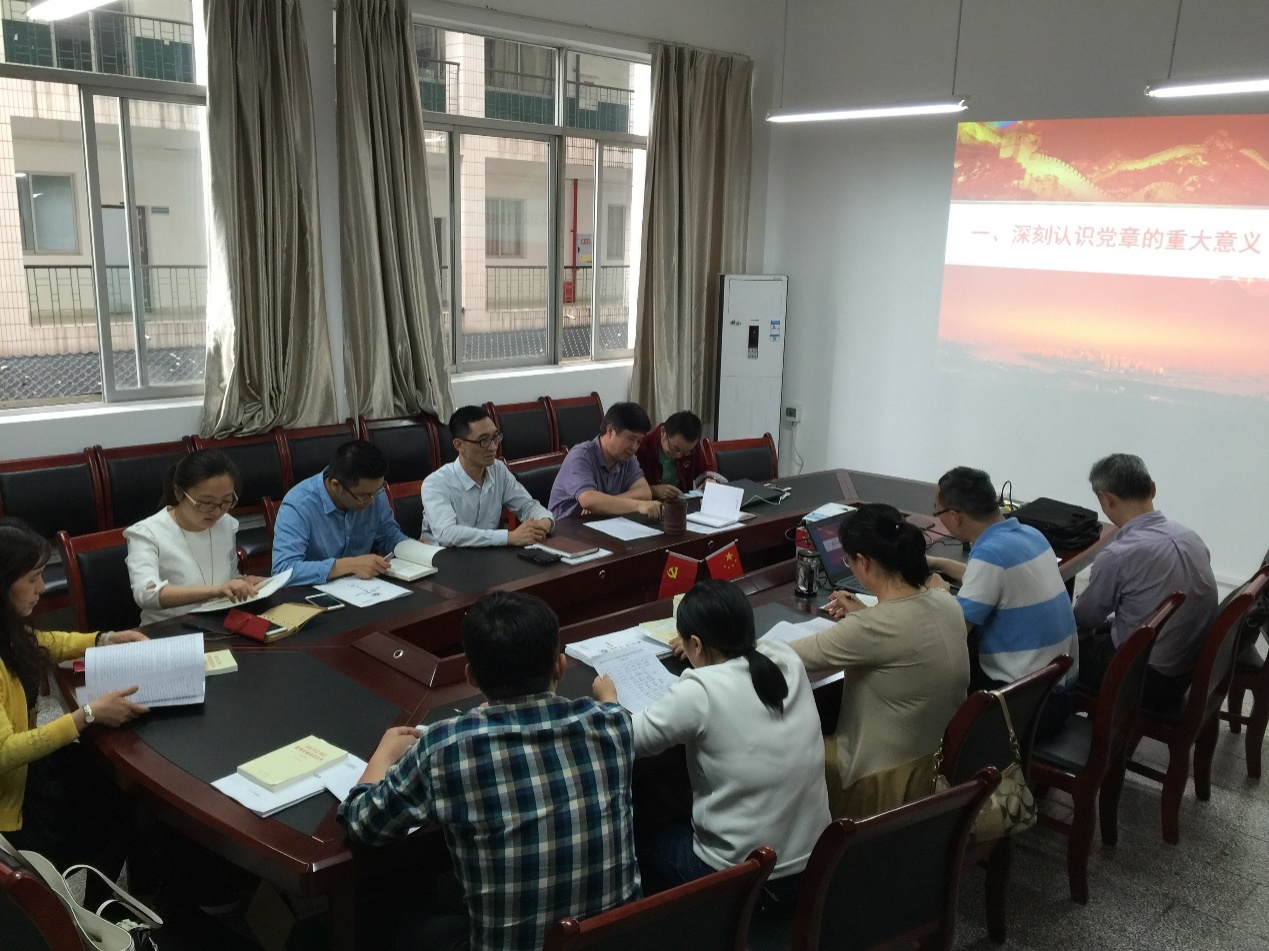 会议第一项议程由支部书记林孝松主持主题为《做学习党章遵守党章的模范》的《中国共产党章程》学习。林书记通过内容详实的讲稿、条理清晰的PPT、生动有趣的语言,从“深刻认识党章的重大意义”、“深入理解党章的内涵特色”、“做学习党章、遵守党章、维护党章、贯彻党章的模范”三个方面开展了精彩的论述。通过本次学习,支部党员认识到了党章的重大意义,深刻理解了党章的内涵特色。作为一名党员,通过学习,明确了解自己的行为举止是否符合党章党规的要求,是否能按照党章党规做人做事。通过对党章的学习,掌握党的基本理论,做增强“四种意识”的模范,做忠诚、干净、担当、实干的共产党员。