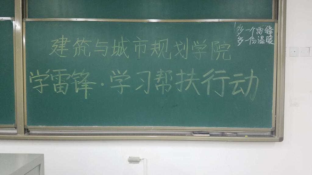 建筑与城市规划学院学生会成员,带着新时代新风气的信仰,用自己的能力,践行着社会主义核心价值观,表达了心中对雷锋同志的敬意。2018年3月29日,建筑与城市规划学院“学习帮扶活动”在A01 426教室开展。