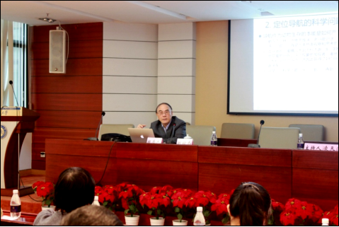 刘经南院士从科技创新入题,采用通俗易懂的语言,深入浅出给大家介绍定位导航的问题与哲学的问题、定位导航的科学问题和原理、定位导航技术和工程的进展历程和北斗卫星导航定位系统应用发展展望等。刘院士解释了定位导航的概念,提出了定位导航“你是谁”、“从哪里来”、“来干什么”、“到哪里去”的哲学问题,使在座的师生加深了对定位导航的理解。通过老马识途等典故,他引出定位导航的原理及重要性,从指南车等传统定位导航工具,到卫星导航、激光制导等现代导航技术,以及太空导航等未来导航技术,详细介绍了其发展历程、基本原理及其发展方向。特别是在数字城市、智慧交通、路桥建设、航空水运、防灾减灾、环境治理、天气预报、国防建设等方面的广泛应用。另外,他还介绍了我国北斗卫星导航定位系统的发展状况及规划,指出我国北斗卫星导航定位系统在满足行业和区域发展需求、解决导航频等方面做出的突出贡献。